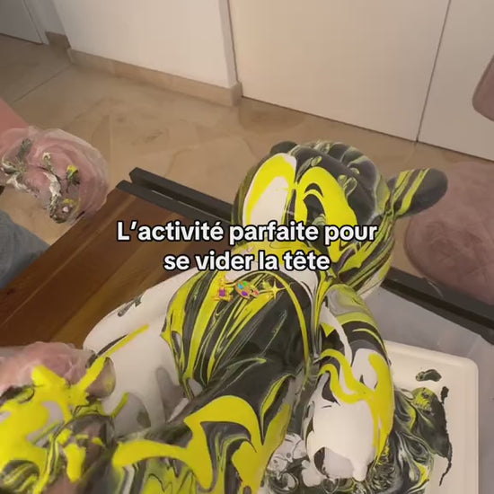 Kit DIY Pouring Art Ours 33 cm – Crée ton œuvre d’art à la maison (Noir / Jaune / Blanc)