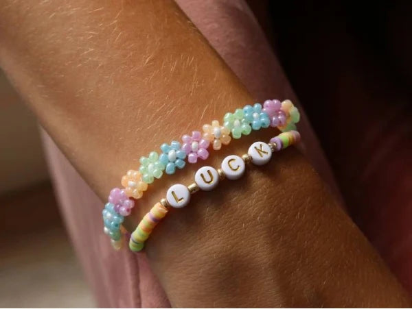 Ce kit pour faire des bijoux Luck va vous séduire avec ses deux bracelets à réaliser aux couleurs pastels. La Petite Epicerie a imaginé ce kit bijou Luck rien que pour vous ! Facile à réaliser, vous retrouverez à l'intérieur tout le matériel dont vous avez besoin pour créer deux superbes bracelets en perles heishi colorés aux différentes perles. Perles heishi, perles de rocailles et perles lettres composeront vos deux bracelets faits par vos soins !