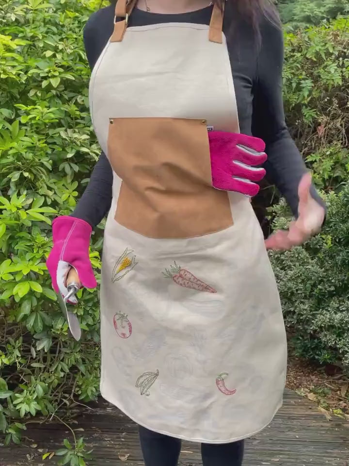 Avec des illustrations végétales magnifiquement dessinées à la main par l'artiste Sara Abu-Hejleh, le tablier de jardinage en toile de Chasing Threads Ltd est plus qu'un simple accessoire de cuisine - c'est une toile pour votre créativité. Les lignes de broderie en gris clair sont conçues pour que vous puissiez donner vie à chaque légume avec des fils de couleur vive, pour un résultat magnifique et unique.