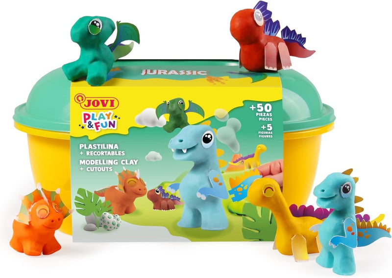 Mit der Jovi Jurassic Play&Fun Truhe können Kinder in eine Welt voller wilder Dinosaurier und fantastischer Kreaturen zum Modellieren eintauchen. Es ist die perfekte Aktivität, um ihre Fantasie anzuregen und gleichzeitig Spaß zu haben!