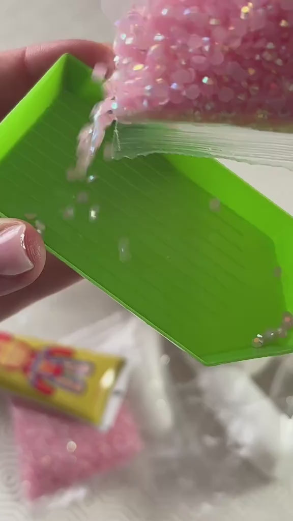 Um mit diesem Set ein unvergessliches Erlebnis zu haben, wählen Sie zunächst einen komfortablen und gut beleuchteten Raum. Dies wird Ihnen helfen, sich zu konzentrieren und den kreativen Prozess in vollen Zügen zu genießen. Ordnen Sie Ihre Materialien, indem Sie die mitgelieferte Platte verwenden, um die Diamanten nach Farben zu sortieren, was das Anbringen von Strasssteinen erheblich erleichtert. Lassen Sie sich dann von Ihrer Intuition leiten und platzieren Sie jeden Diamanten auf der Form. Tauchen Sie ein in einen Moment des Vergnügens und der intensiven Konzentration, wie bei einer Meditation!
