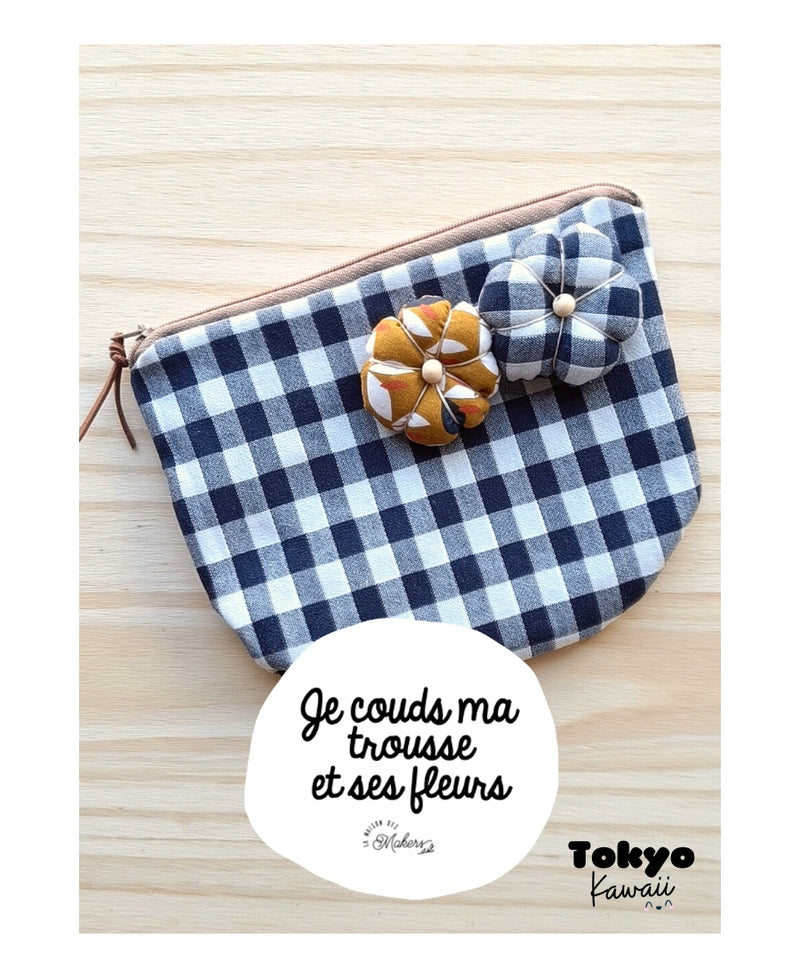 Diese Nähprojektbox enthält alle Materialien, die Sie für die Umsetzung Ihres Projekts benötigen: ein Federmäppchen und eine Blumenbrosche.