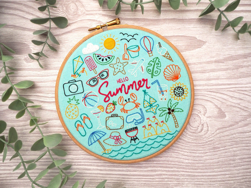 Dieses sommerliche Stickmuster enthält 30 Kreuzstichmotive, die Sie die ganze Saison über sticken können . Hello Summer verwendet 7 verschiedene Stickstiche mit bebilderten Schritt-für-Schritt-Anleitungen.