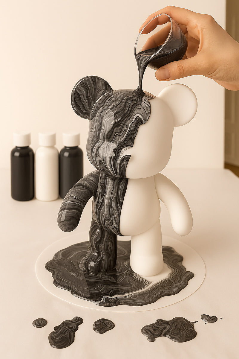 Unser Bären-Set mit flüssiger Acrylfarbe ist perfekt, um den neuen Trend des Farbgießens zu entdecken und auszuprobieren. Ideal für alle, von Familien bis hin zu jungen Erwachsenen, die sich für Straßenkunst und originelle Dekoration begeistern!